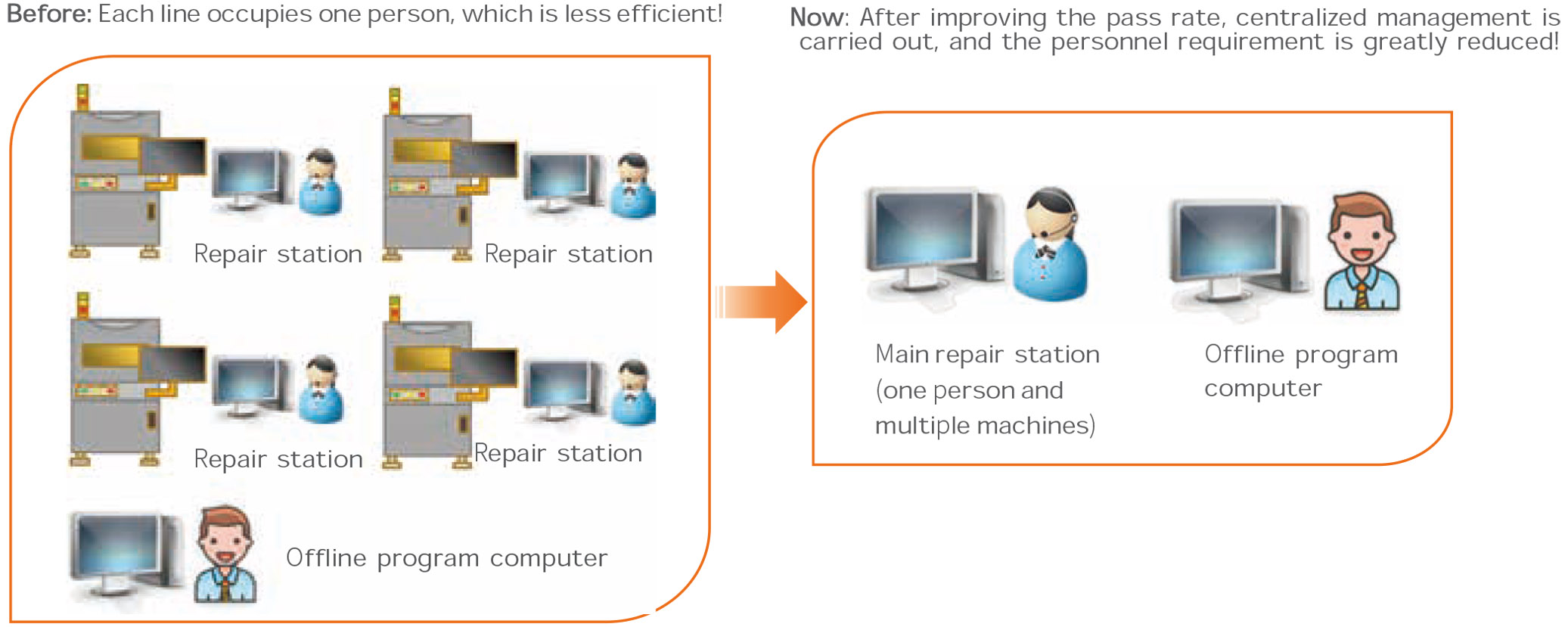 AOI uses telecentric lens without distortion effect, adopts multi-reference point calibration method, and automatic positioning of detection window, including double positioning of pad and body, which solves the problem of offsetcaused by board deformation and greatly reduces false alarms.