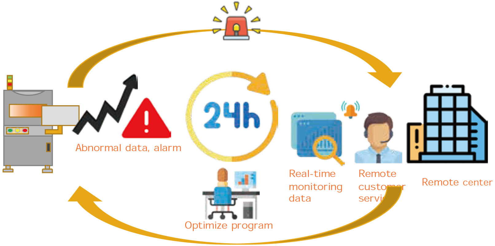 AOI uses telecentric lens without distortion effect, adopts multi-reference point calibration method, and automatic positioning of detection window, including double positioning of pad and body, which solves the problem of offsetcaused by board deformation and greatly reduces false alarms.